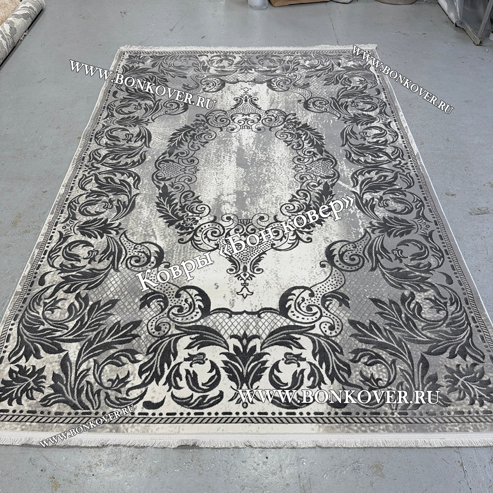 Красивый Ковер Для Гостиной Медальон Дизайн 30544 Серый наполняет интерьер комнаты теплом и уютом, гармонично сочетает в себе изящество и стиль. Он соткан из современных материалов, прочный и долговечный.